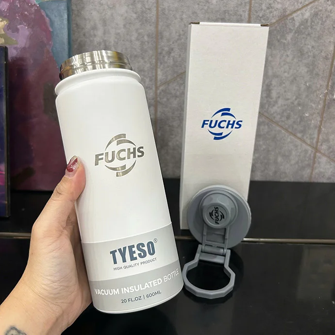 Bình giữ nhiệt in logo FUCHS dung tích 600ml là sản phẩm quà tặng doanh nghiệp sang trọng, thiết kế hiện đại, màu trắng tinh tế, phù hợp làm quà tặng khách hàng, đối tác và nhân viên. Sản phẩm không chỉ tiện dụng mà còn giúp nâng cao hình ảnh thương hiệu chuyên nghiệp.