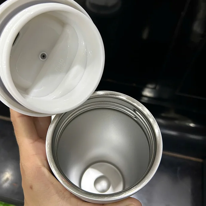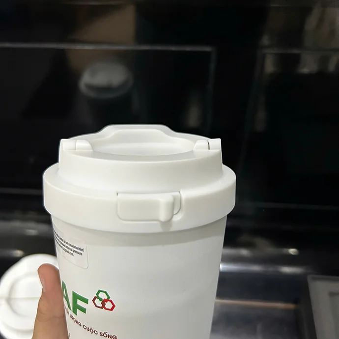 Phần nắp kín chống tràn, miệng bình vừa vặn cho cả việc uống trực tiếp hoặc dùng ống hút. Logo thương hiệu được in UV hoặc khắc laser, bền màu, không bong tróc theo thời gian.