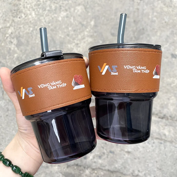 - Logo trên bao da: có thể in chuyển nhiệt hoặc khắc. Phần bao da giúp giữ lại một phần nhiệt độ của cốc, giúp bạn không bị bỏng hoặc quá lạnh khi sử dụng đồ uống.