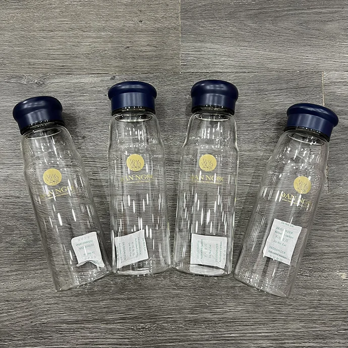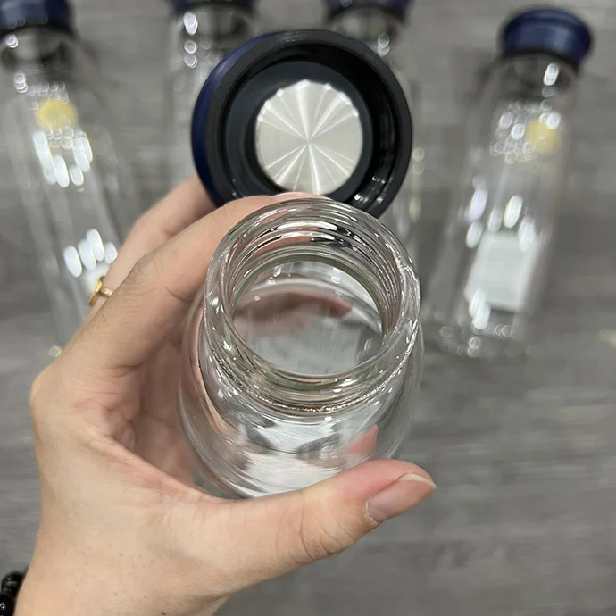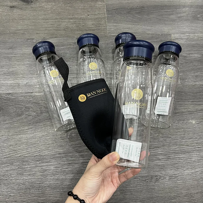 Bình thủy tinh miệng nhỏ nắp gỗ, kèm bọc đen chống va đập
