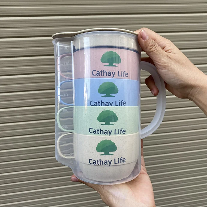 - Bộ bình nước nhựa kèm 4 cốc nhựa lúa mạch.