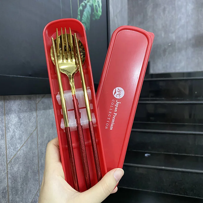 BỘ MUỖNG ĐŨA NĨA INOX NHIỀU MÀU HỘP NHỰA