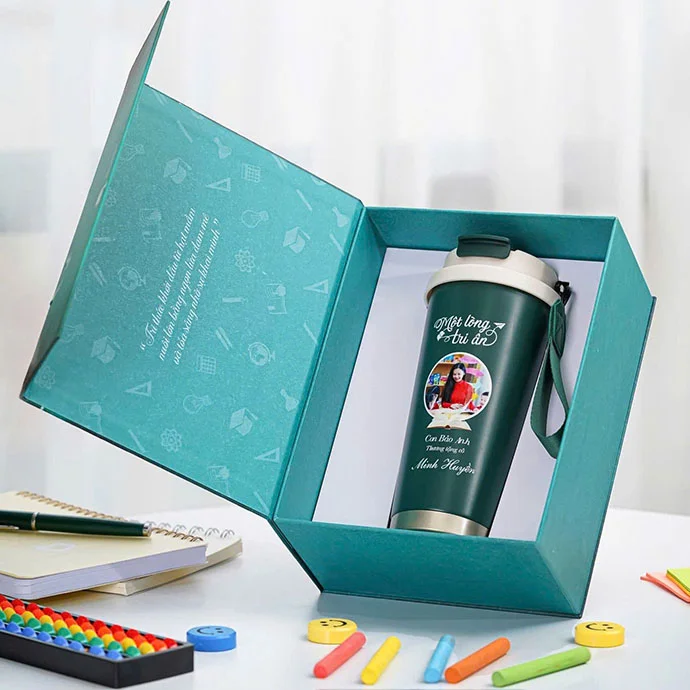 Bộ quà tặng bình giữ nhiệt in logo kèm bút cao cấp là lựa chọn được nhiều doanh nghiệp, trường học và tổ chức ưa chuộng khi muốn gửi lời tri ân đến khách hàng, giáo viên hoặc nhân viên. Sản phẩm được đóng gói trong hộp sang trọng, thiết kế tinh tế, giúp nâng tầm thương hiệu và tạo ấn tượng mạnh mẽ.
