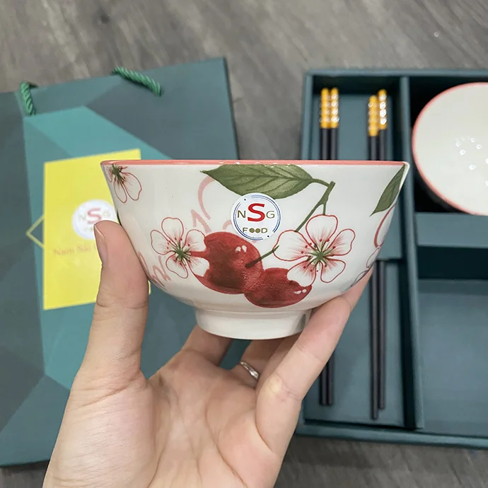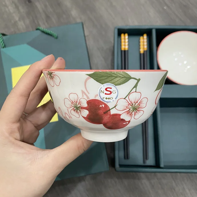 - Bộ quà tặng gồm: 2 chén, 2 đôi đũa in logo NSG Food