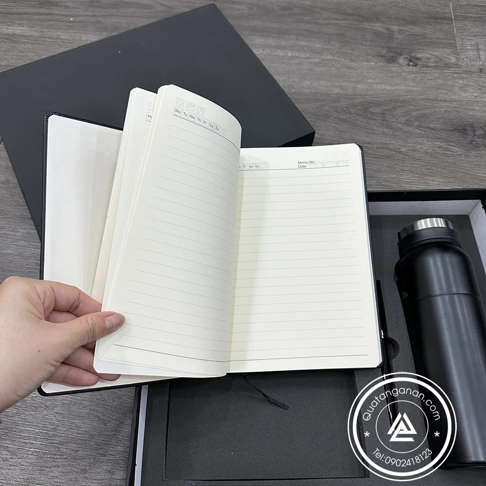 - 1 sổ tay bìa simili khổ a5, ruột 80 tờ ford kem.