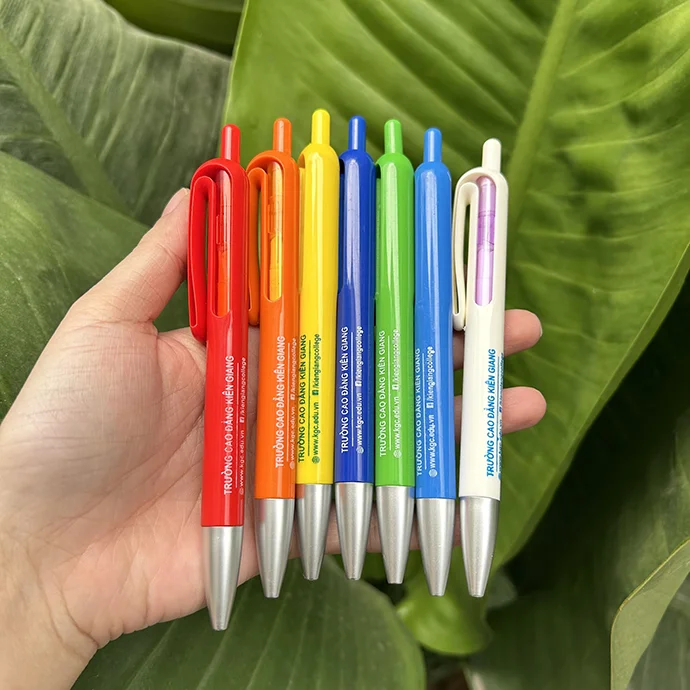 BÚT BI NHỰA BẤM 4 ĐẦU 4 MÀU CÓ ĐẦU MÓC - IN LOGO GIÁ RẺ