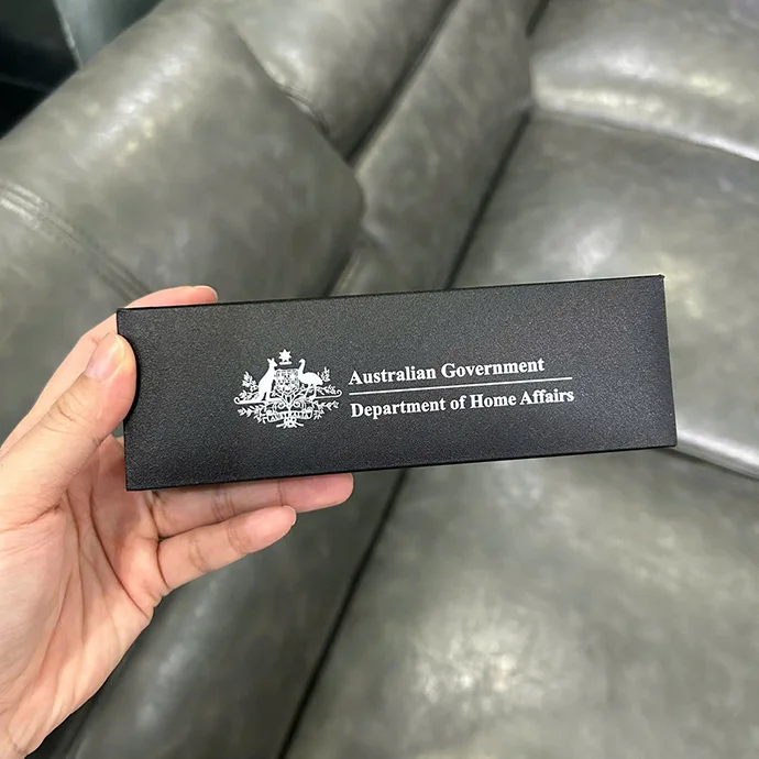 Hộp đựng: Hộp giấy cứng hoặc hộp da cao cấp, in logo hoặc lót nhung sang trọng