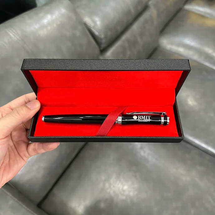 BÚT KIM LOẠI KÈM HỘP SANG TRỌNG IN LOGO RMIT – MÓN QUÀ ĐẲNG CẤP CHO SỰ KIỆN GIÁO DỤC