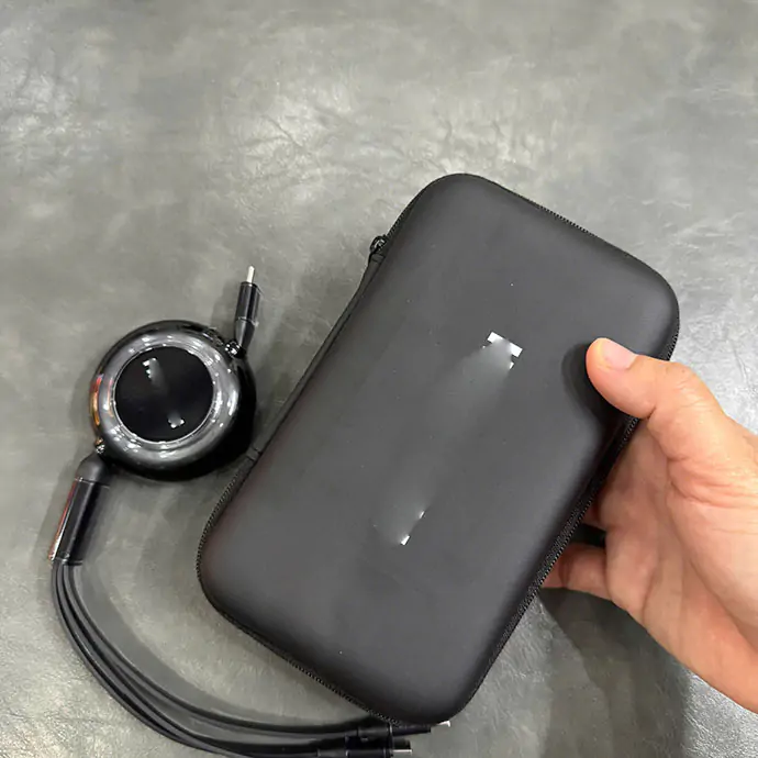 Sản phẩm trong hình còn được thiết kế kèm hộp đựng cứng cao cấp, giúp bảo vệ dây sạc, đồng thời tăng tính thẩm mỹ và phù hợp làm quà tặng doanh nghiệp.
