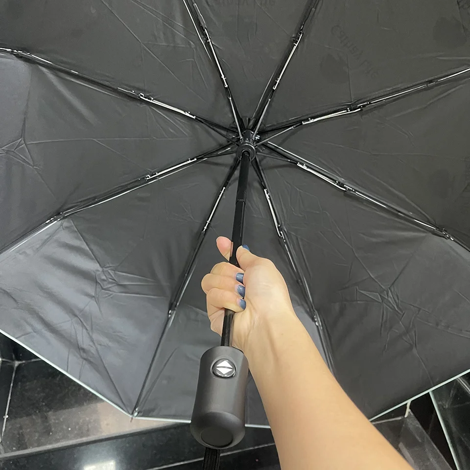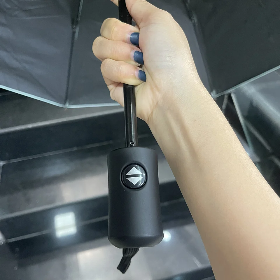 DÙ GẤP BA TỰ ĐỒNG HAI CHIỀU MÀU ĐEN IN LOGO THEO YÊU CẦU