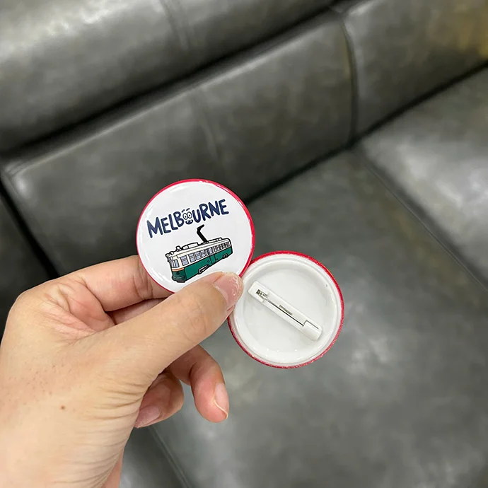 Huy hiệu nhựa in hình MELBOURNE là món quà nhỏ xinh nhưng mang đậm dấu ấn cá nhân và thương hiệu. Sản phẩm được thiết kế dạng tròn, in hình minh họa sinh động như xe điện, vali, máy bay – tượng trưng cho hành trình du lịch đầy màu sắc.