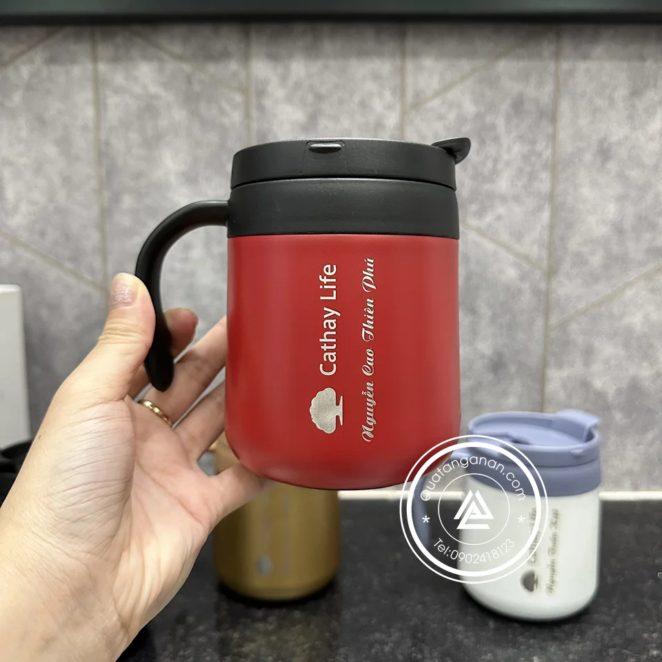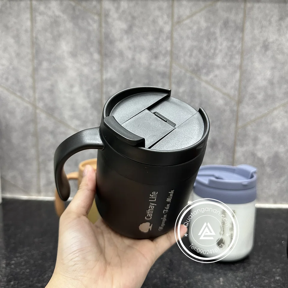 - Ly cà phê giữ nhiệt có tay cầm tiện lợi, giữ nhiệt được 6 -8 tiếng