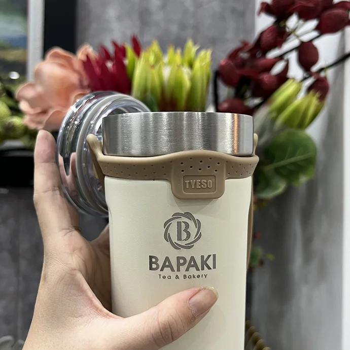 - Ly giữ nhiệt Tyeso có quai sách silicon, thiết kế đẹp, tinh tế, bề, bề mặt nhám chống trầy
