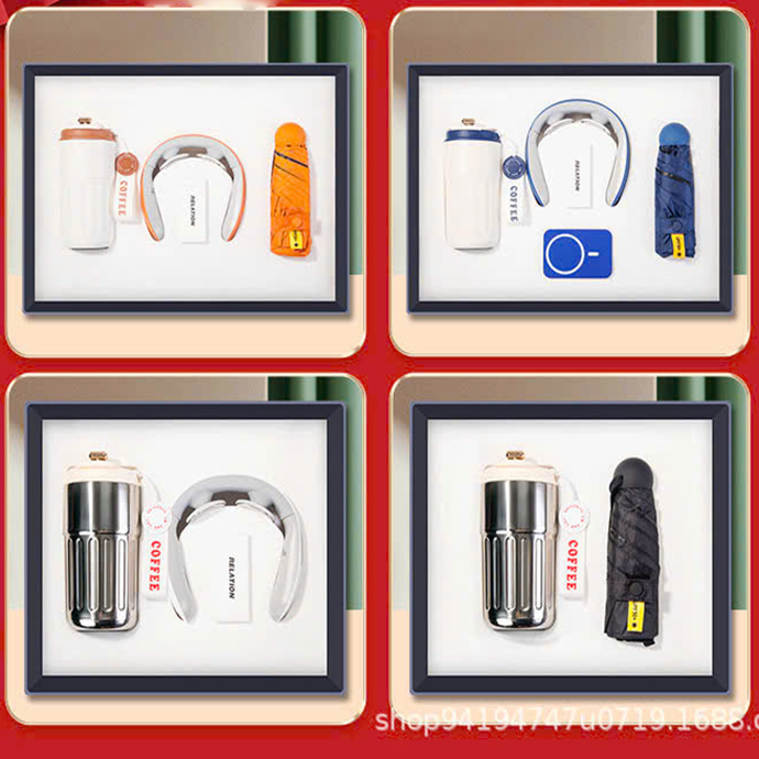 Bộ gift set công nghệ cao cấp tông xanh – trắng, đỏ - trắng là lựa chọn hoàn hảo cho quà tặng doanh nghiệp, sự kiện, khách VIP. Thiết kế sang trọng, bộ sản phẩm gồm bình giữ nhiệt, quạt mini cầm tay, đế sạc không dây, ô gấp – mang đến trải nghiệm tiện ích và đẳng cấp khi nhận quà.