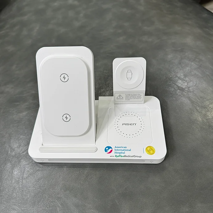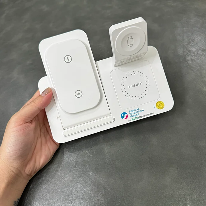 Sạc không dây 3 trong 1 Pisen Quick Wireless MagSafe Station là thiết bị sạc hiện đại, đa năng, hỗ trợ sạc đồng thời điện thoại, đồng hồ thông minh và tai nghe không dây. Với thiết kế tinh tế, tích hợp đèn ngủ tiện lợi, sản phẩm này là lựa chọn lý tưởng cho văn phòng, phòng ngủ hoặc làm quà tặng doanh nghiệp cao cấp.
