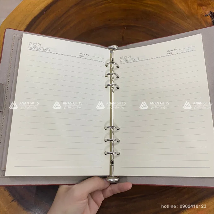 Với mẫu sổ bìa da còng móc khoá cao cấp A5, đây là sản phẩm được làm từ chất liệu da cao cấp, đây là một trong những mẫu sổ được nhiều doanh nghiệp lựa chọn.
