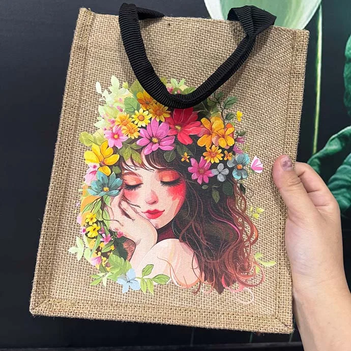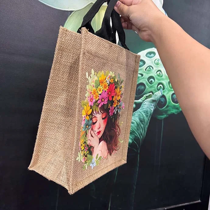 Túi vải đay có ép vải không dệt mặt trong, in logo theo yêu cầu, chất liệu thân thiện môi trường, thiết kế chuyên nghiệp, đáp ứng nhu cầu quảng bá thương hiệu hiệu quả.