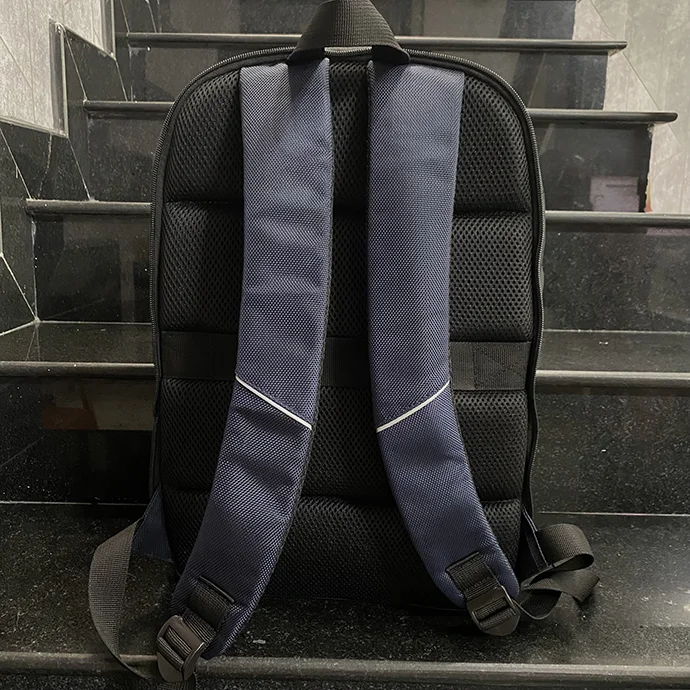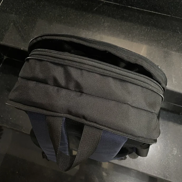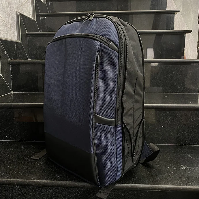 - Balo có hai ngăn chính và hai ngăn phụ. Màu sắc: xanh dương phối đen.