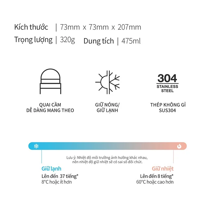 🔹 Khả năng giữ nhiệt vượt trội – Công nghệ cách nhiệt chân không, giữ nóng/lạnh lên đến 12 - 24 giờ.