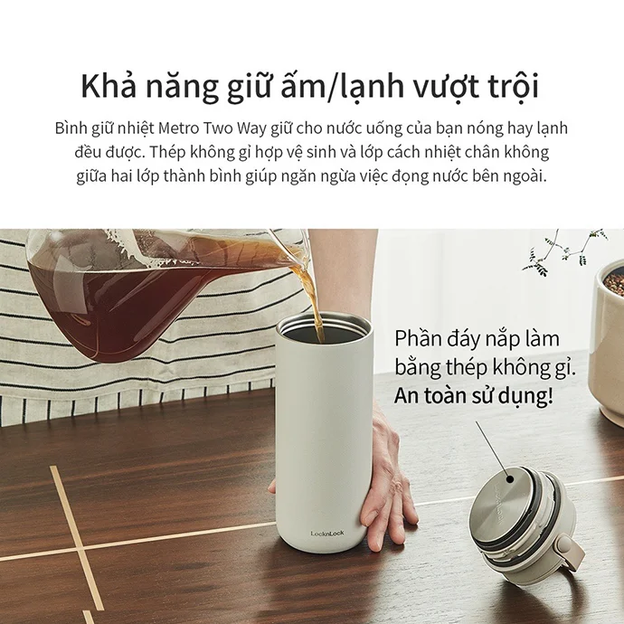 🔹 Thiết kế hai cách sử dụng (Two Way) – Có thể uống trực tiếp hoặc dùng nắp rót tiện lợi.