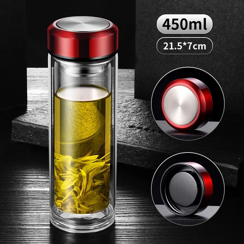 - Bình thủy tinh hai lớp cách nhiệt phù hợp để dùng làm bình phòng họp, bình quà tặng để pha trà, bình nước detox.