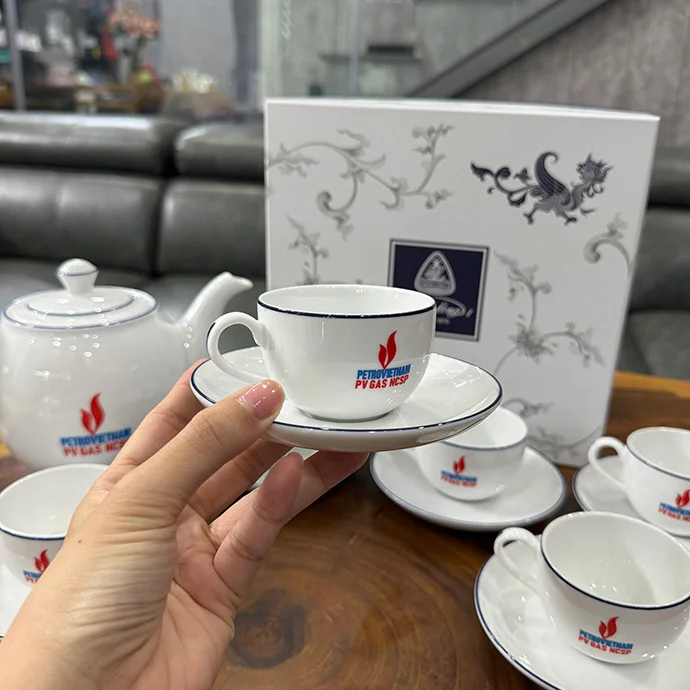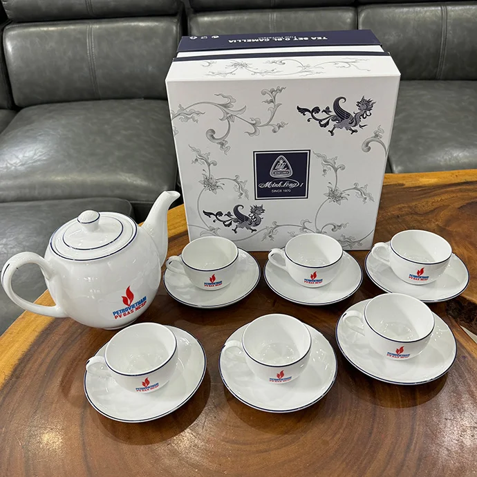 BỘ BÌNH TRÀ GỐM SỨ MINH LONG CAO CẤP IN LOGO THEO YÊU CẦU