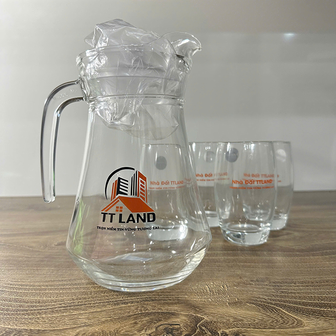 Bộ bình và ly thủy tinh in logo chính là lựa chọn hoàn hảo giúp gây ấn tượng mạnh với khách hàng, đối tác và nhân viên.