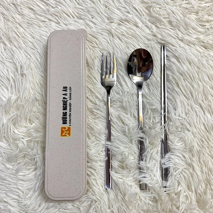 Bộ quà tặng bao gồm: 1 thìa, 1 đôi đũa, 1 nĩa, hộp nhựa đựng kèm.