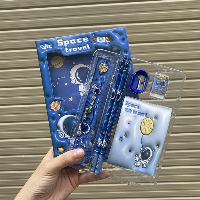 - Set 6 món: 2 bút chì, tẩy, chuốt bút chì, thước kẻ, sổ tay.