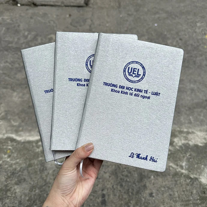 - 1 sổ tay bìa simili khổ a5, ruột 80 tờ ford kem.