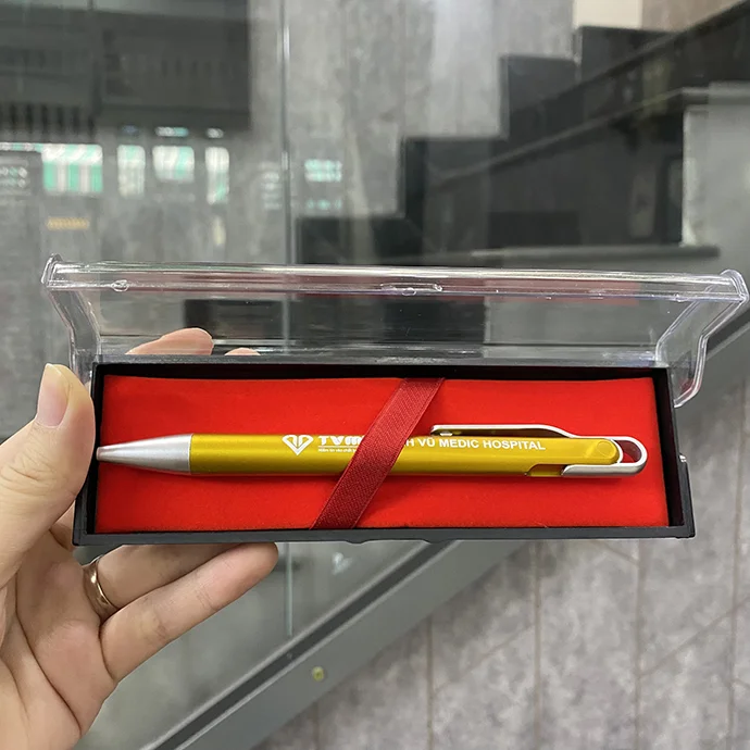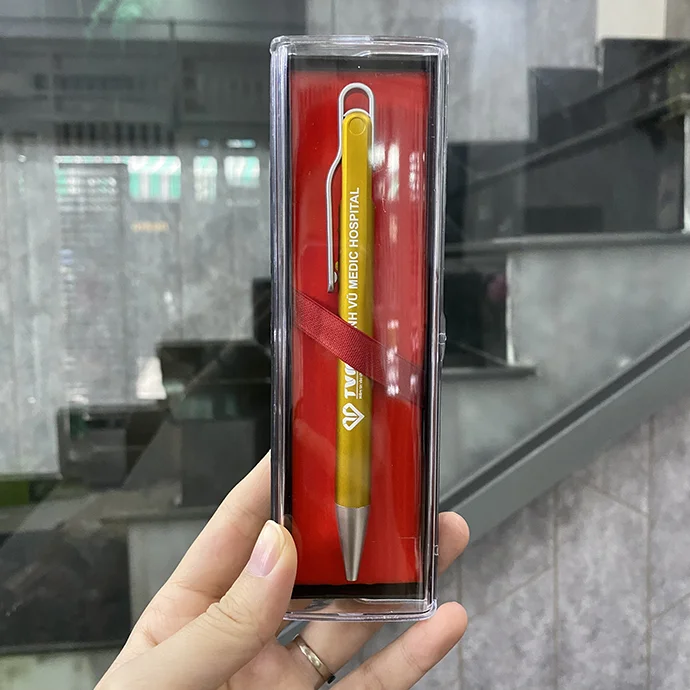 BÚT BI NHỰA NHIỀU MÀU CÓ MÓC TREO IN LOGO