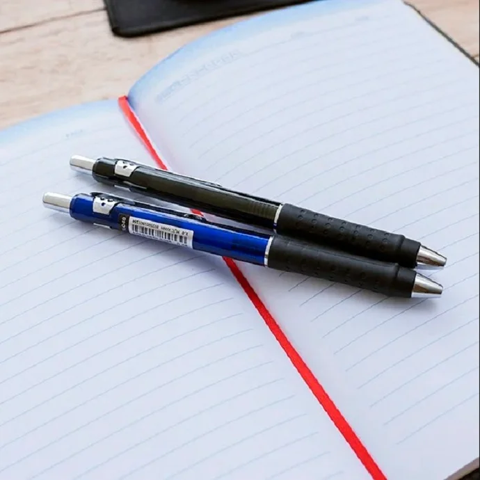 Bút thiết kế dạng bấm bấm khế, có grip - thân bút nhựa đục, giắt bút kim loại mạ crom, tảm có đệm mềm.