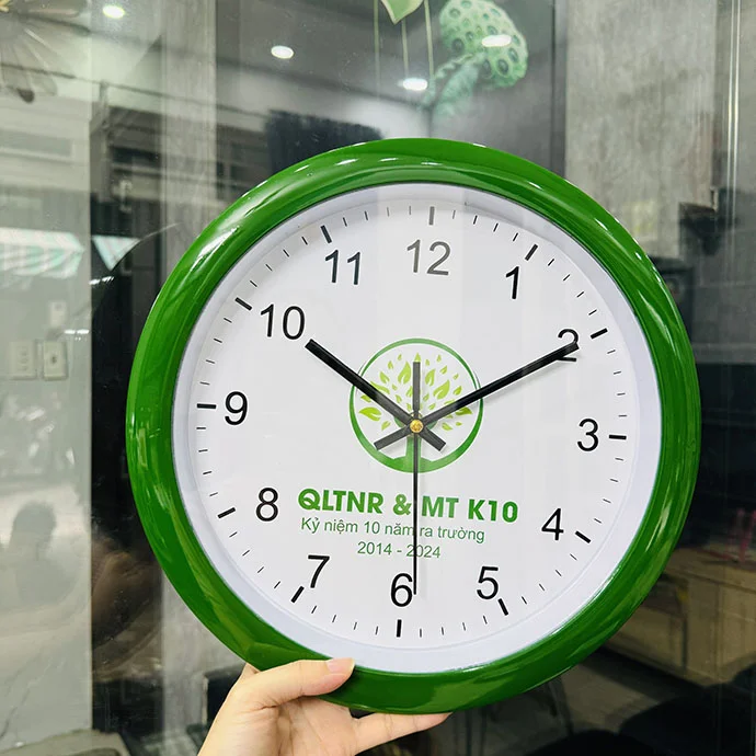 QUÀ TẶNG AN AN chuyên cung cấp đồng hồ treo tường từ bình cho đến cao cấp. Các công nhân chuyên sản xuất đồng hồ có khả năng in logo thương hiệu, tên công ty lên đồng hồ đẹp và rõ nét. Chúng tôi hiểu rằng, logo in trên đồng hồ cũng là một cách quảng bá rất đẹp và chuyên nghiệp cho công ty, giúp hình ảnh công ty vươn xa và tiếp cận được nhiều đối tượng khách hàng trên toàn quốc. Việc đầu tư trang thiết bị mới và sử dụng máy in công nghệ cao, cùng loại mực in cao cấp làm cho hình ảnh được in lên đồng hồ sẽ rất sắc nét, màu đẹp, và không bị bong tróc trong quá trình sử dụng.