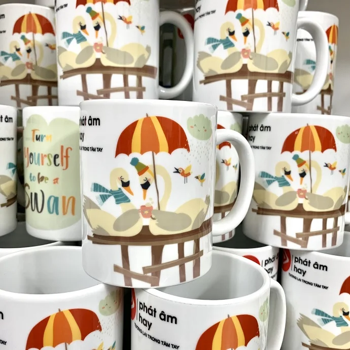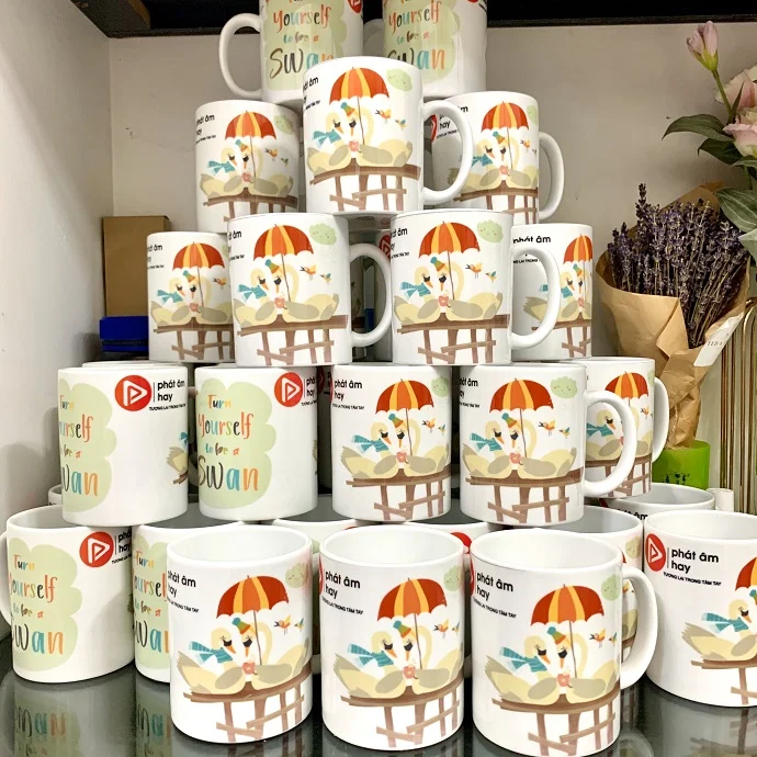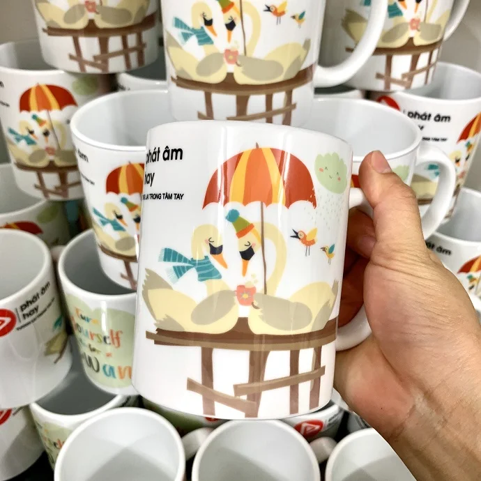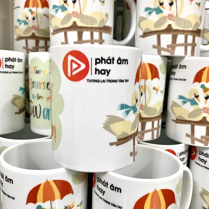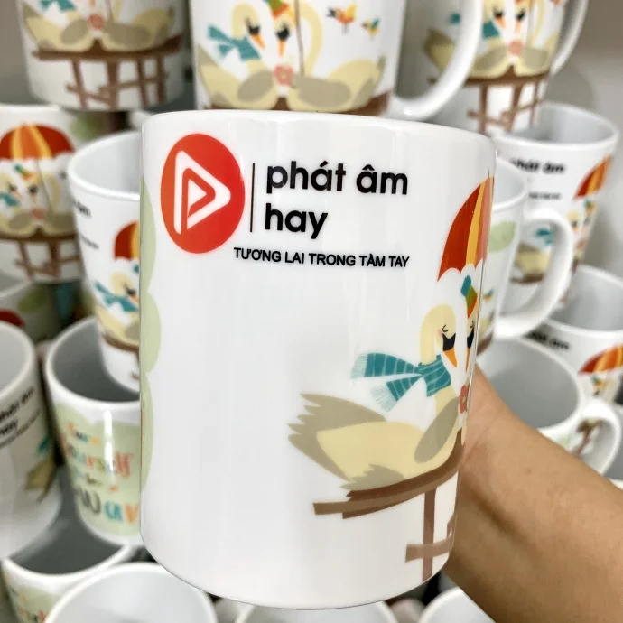 Ly sứ Minh Long in logo Công Ty Phát Âm Hay kèm họa tiết dễ thương làm quà tặng khách hàng, với công nghệ in chất lượng cao, hình ảnh sắc nét màu sắc nổi bật, giúp quý khách hàng có 1 sản phẩm quà tặng đẹp gửi đến khách hàng của mình.