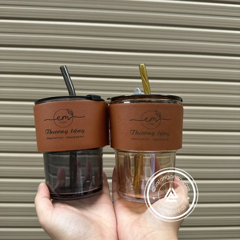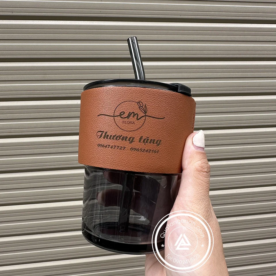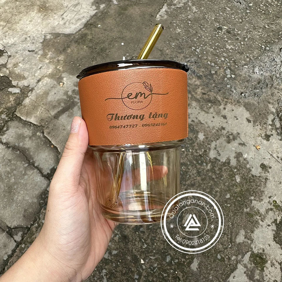 - Cốc thủy tinh có nắp, ống hút và bao da đi kèm.