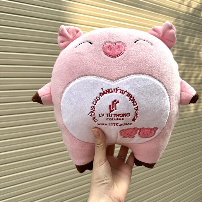 SẢN XUẤT GỐI BÔNG THEO YÊU CẦU - GỐI BÔNG HEO HỒNG THÊU LOGO