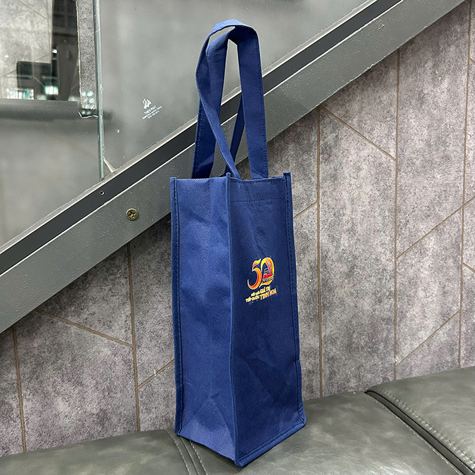 Túi vải không dệt đựng bình rượu/bình giữ nhiệt in logo là lựa chọn quà tặng doanh nghiệp sang trọng cho sự kiện kỷ niệm, hội nghị, tri ân khách hàng. Với thiết kế màu xanh navy tinh tế, in logo nổi bật, chiếc túi giúp tăng nhận diện thương hiệu một cách chuyên nghiệp và đẳng cấp.