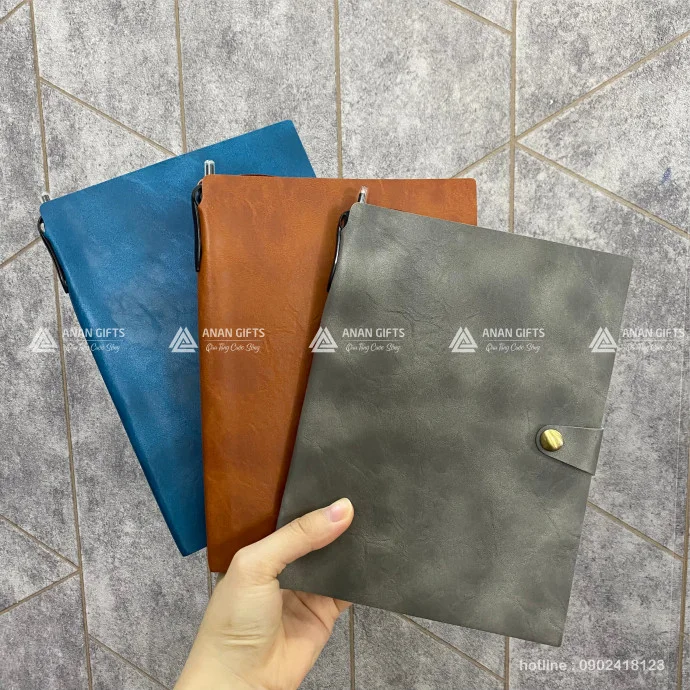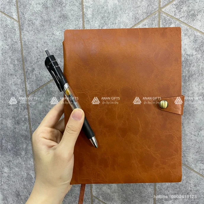 - Thành phẩm: Sổ A5 có nút bấm, có bút bi đi kèm.