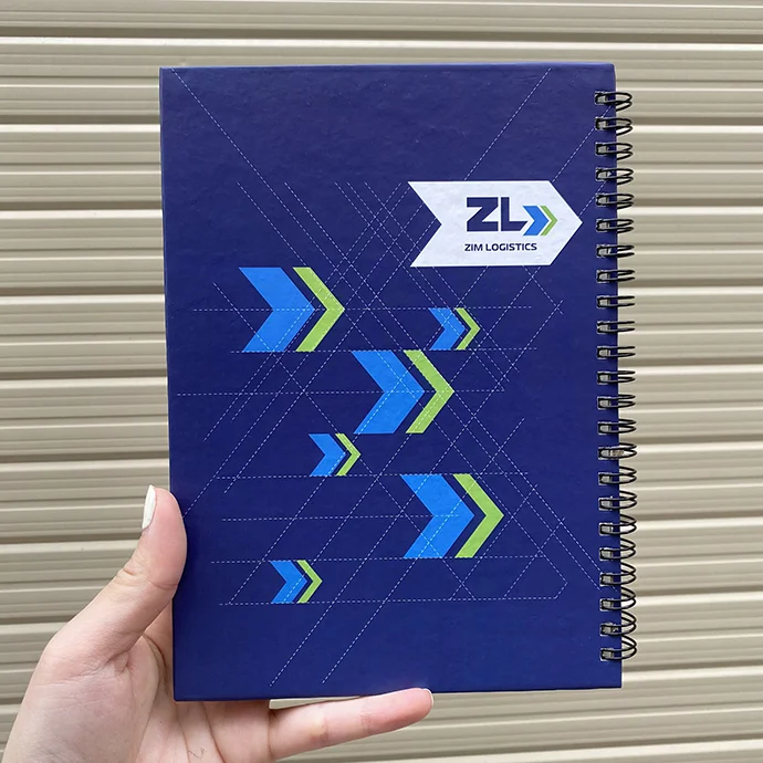 Sổ tay lò xo in logo Zim logistics.