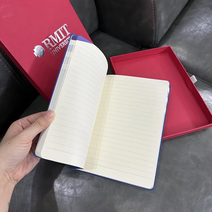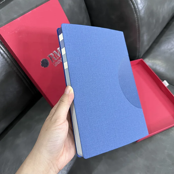 Sổ tay vải bố in logo RMIT mang thiết kế tối giản và hiện đại, là sự kết hợp tinh tế giữa chất liệu cao cấp và tính năng tiện dụng. Với tone xanh dương trang nhã cùng họa tiết dập nổi tinh tế, sản phẩm không chỉ phục vụ ghi chép mà còn truyền tải hình ảnh thương hiệu chuyên nghiệp, đẳng cấp. Đây là món quà ý nghĩa dành cho sinh viên, đối tác hoặc sự kiện doanh nghiệp.