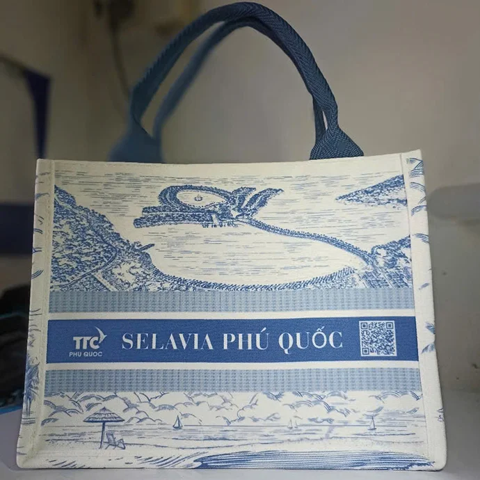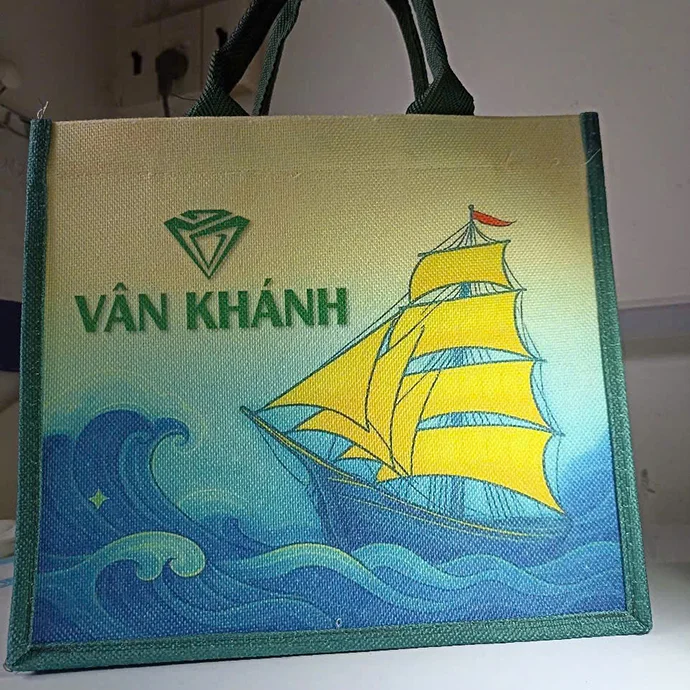 Túi vải đay là sản phẩm quà tặng cao cấp, thiết kế tinh tế với hình ảnh phong cảnh được in chuyển nhiệt sắc nét. Chất liệu vải đay tự nhiên, mộc mạc nhưng không kém phần sang trọng, phù hợp với xu hướng sống xanh và bảo vệ môi trường. Đây là lựa chọn lý tưởng cho các chương trình du lịch, hội nghị, sự kiện hay làm quà tặng thương hiệu độc đáo.